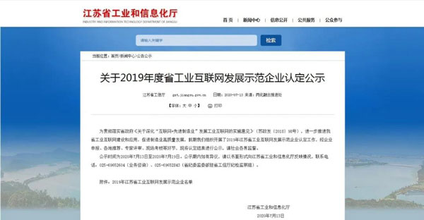 為貫徹落實省政府《關于深化“互聯網+先進制造業(yè)”發(fā)展工業(yè)互聯網的實施意見》(蘇政發(fā)〔2018〕98號),進一步推進我省工業(yè)互聯網建設和應用,促進制造業(yè)高質量發(fā)展,前期江蘇省工信廳組織開展了2019年江蘇省工業(yè)互聯網發(fā)展示范企業(yè)認定工作。